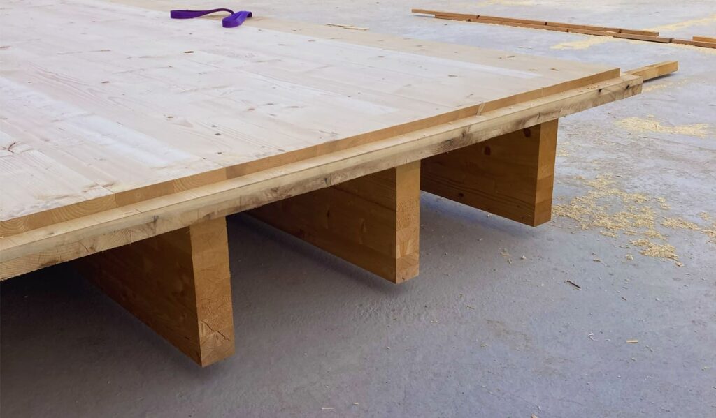 El CLT (Cross Laminated Timber o madera contralaminada) es un panel estructural formado por capas cruzadas de tablas encoladas. Ofrece una rigidez y resistencia excelentes, y es adecuado para viviendas unifamiliares, edificios de varios plantas e incluso equipamientos públicos. Su montaje es rápido, limpio y permite un alto grado de prefabricación.