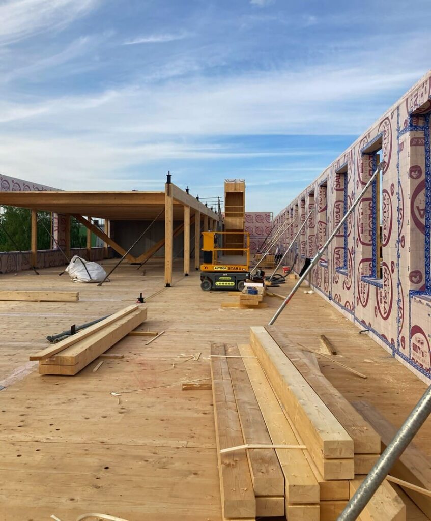 - Hybrid timber-steel structure: combines the advantages of both materials in more complex projects.